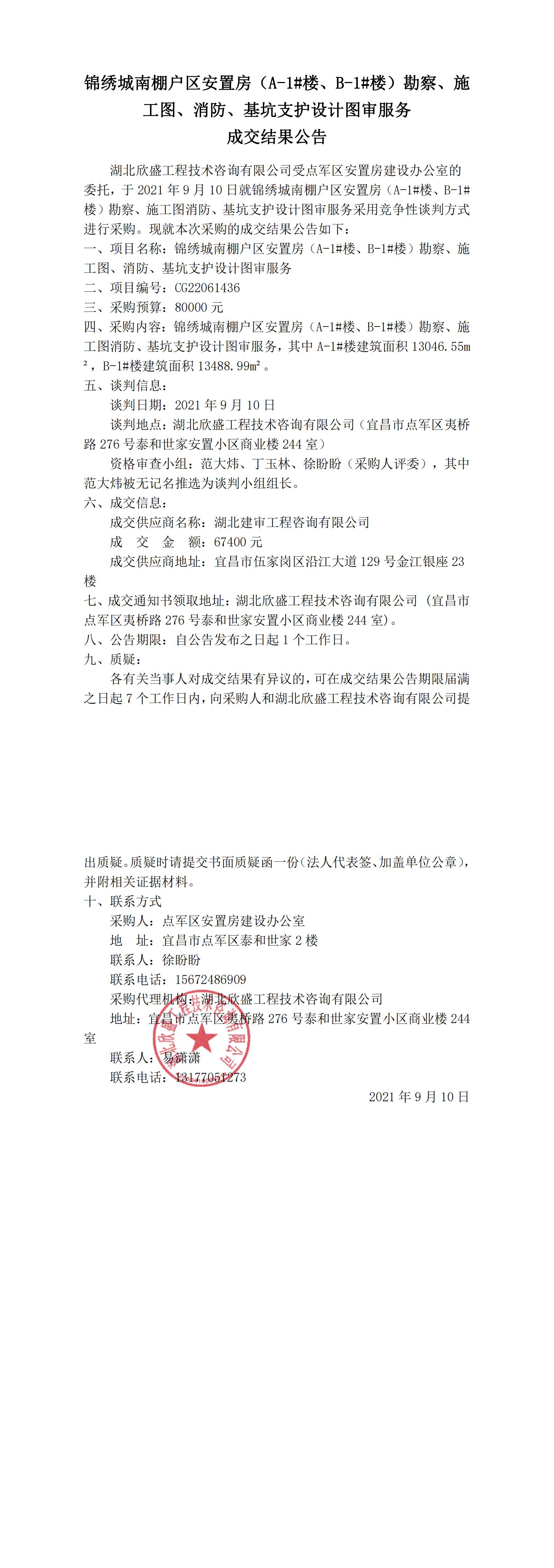 錦繡城南棚戶區(qū)安置房(A-1#樓、B-1#樓)勘察、施工圖、消防、基坑支護(hù)設(shè)計(jì)圖審服務(wù)成交結(jié)果公告