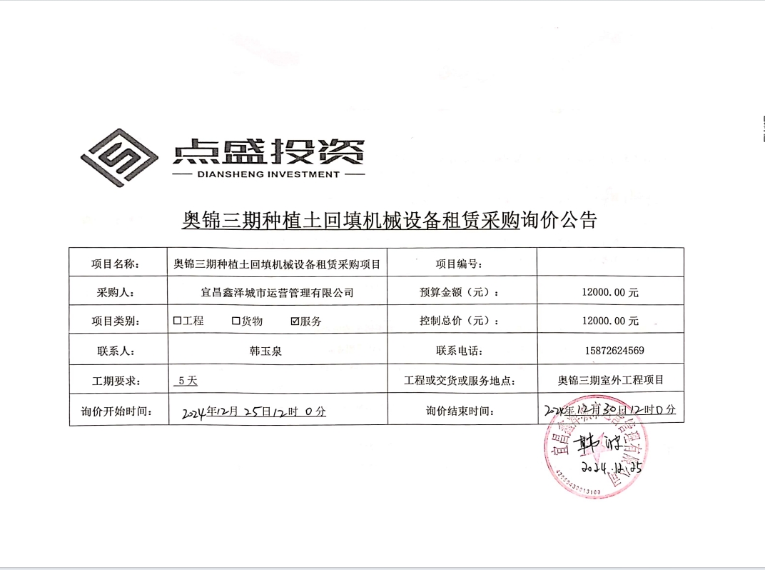 奧錦三期種植土回填機(jī)械設(shè)備租賃采購(gòu)詢價(jià)公告