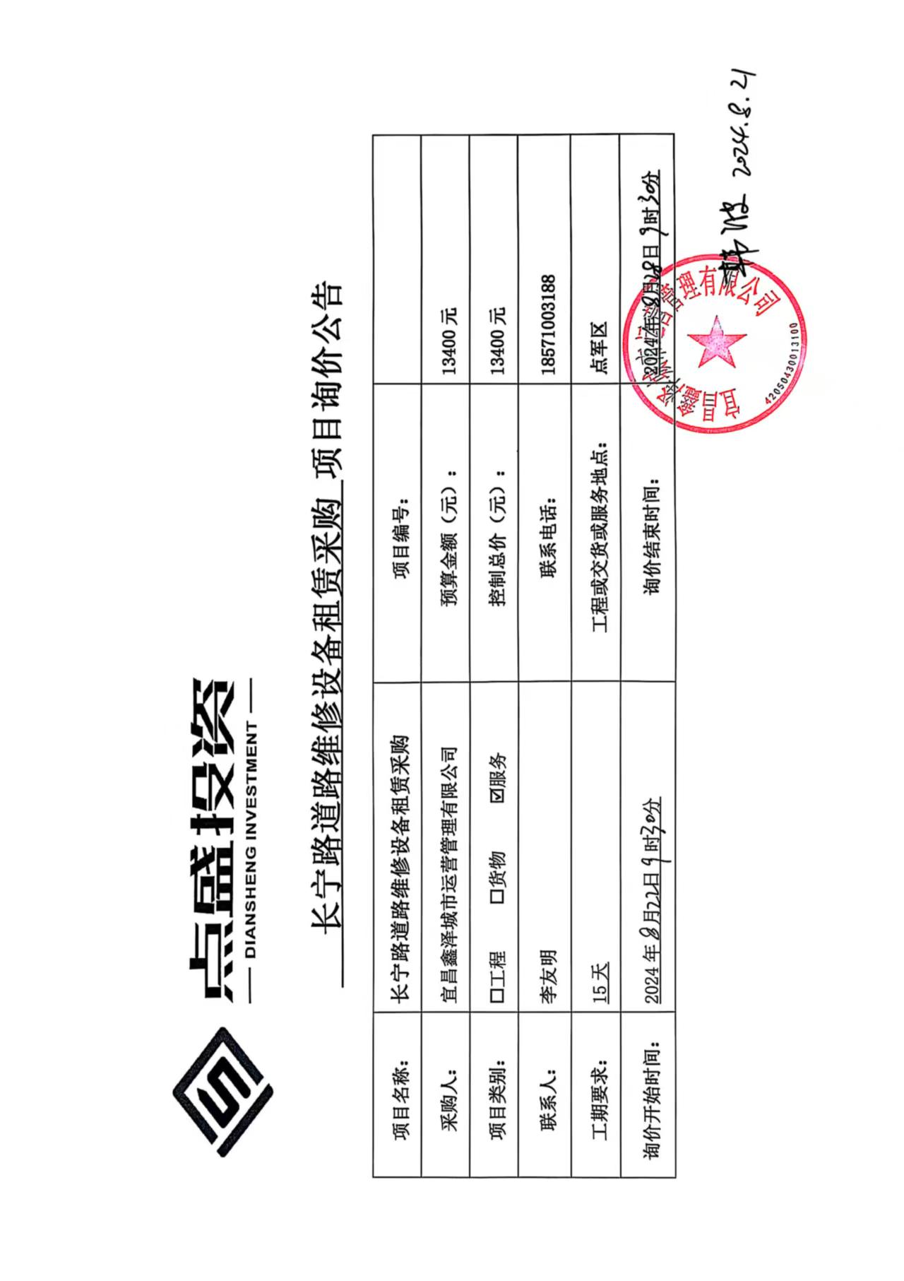 長(zhǎng)寧路道路維修設(shè)備租賃采購(gòu)詢價(jià)公告